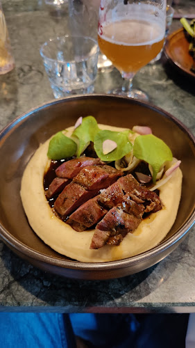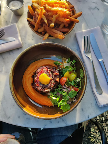 De sfeer daar is behoorlijk aangenaam; een gezellige setting waar je makkelijk een paar uur kunt doorbrengen. Denk aan een trendy uitstraling met een informele vibe. Maar, eerlijk is eerlijk, soms voel je de drukte en dat kan de akoestiek beïnvloeden. Je komt er ook om te genieten van de prinses onder de voorgerechten: de entrecote, die volgens velen top is.