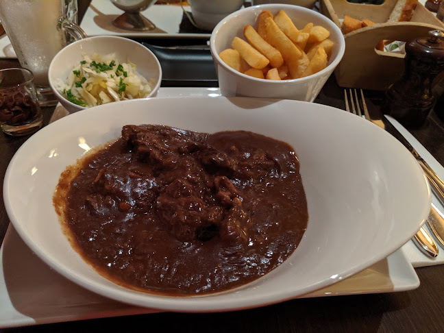De menu-opties zijn vers en lokaal, met heerlijke Belgische gerechten zoals Vlaamse goulash en prachtige visstoofschotels. Het lijkt misschien een bescheiden plek, maar de kwaliteit van het eten en de service zijn allesbehalve gemiddeld. De obers zijn attent, en ja, zelfs bij een volle bar blijven ze vriendelijk, wat altijd een plus is.