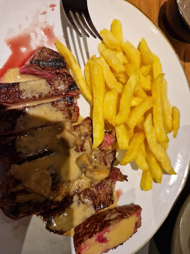Bij binnenkomst word je verwelkomd door een warm interieur, dat perfect aansluit bij de knusse setting. De bediening? Super vriendelijk en attent! Je hoeft je geen zorgen te maken over honger; de porties zijn meer dan genoeg. Denk aan die tomahawk steak waar iedereen over praat. Het is als een smaakexplosie in je mond!
